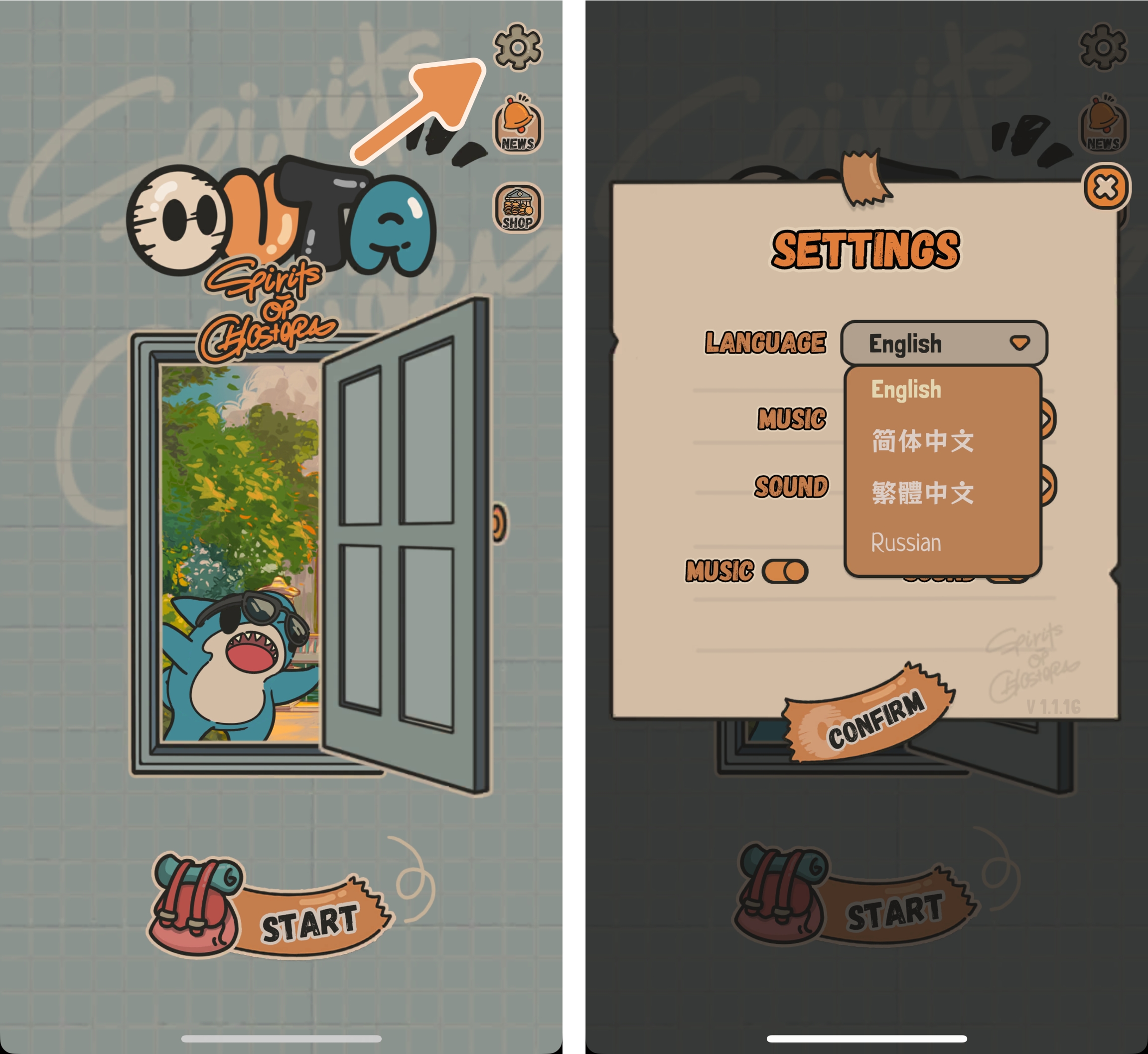 You can adjust options such as language and BGM volume in the “Settings” button at the top right.