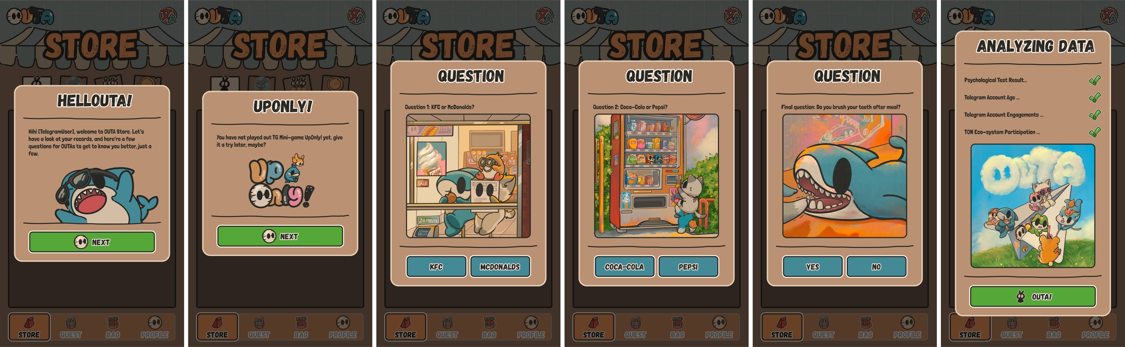After completing a series of psychological test questions, based on your test results and Telegram account history, a free OUTA will be ready to respond to your call.