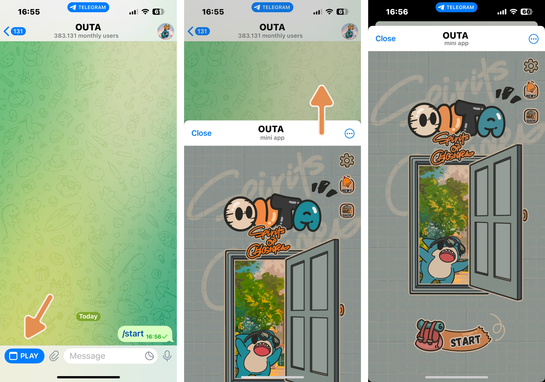 In the Telegram Bot, start the game from the bottom left corner.