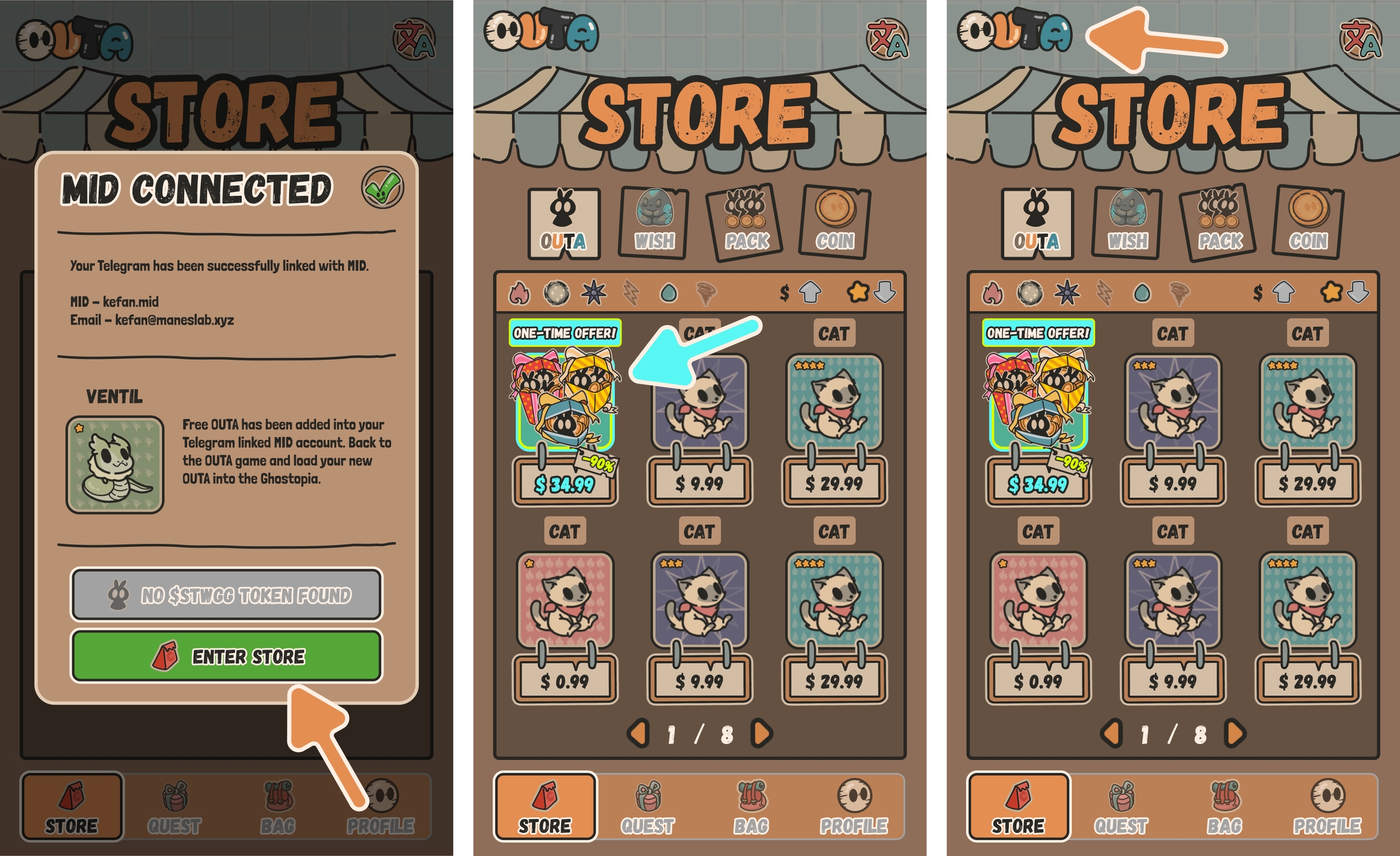 At this point, you have completed the account creation, MID binding, and free OUTA claiming process. Each user will have the opportunity to purchase the first-time top-up offer pack within one week after account creation.